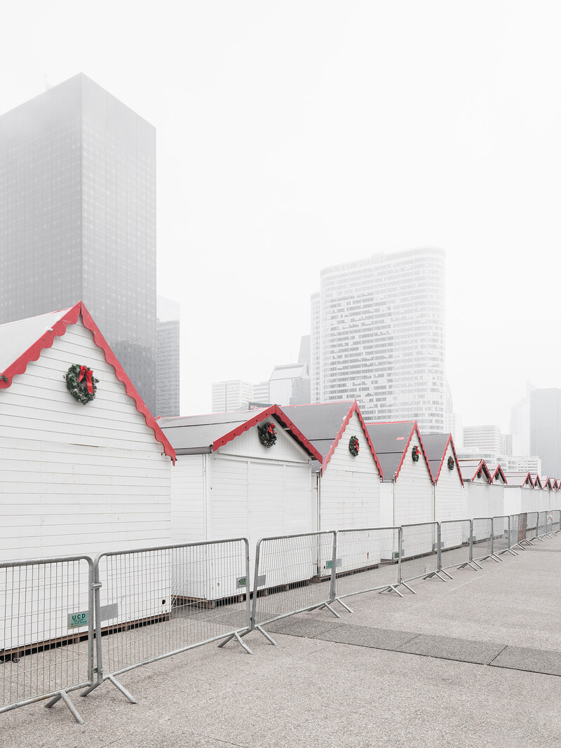 I invent myself the dialogues, and I recognize certain places. The Olympiades in the 13th arrondissement in Paris, I have often visited them, an emotion is provoked, and I notice this red, in contrast with the materiality of the towers in the background. Under the apparent simplicity of the images, the viewer is taken away, his gaze is guided, comfortable to engage in the discovery, the newness whether it is landscape, architecture, or moment of life to share.